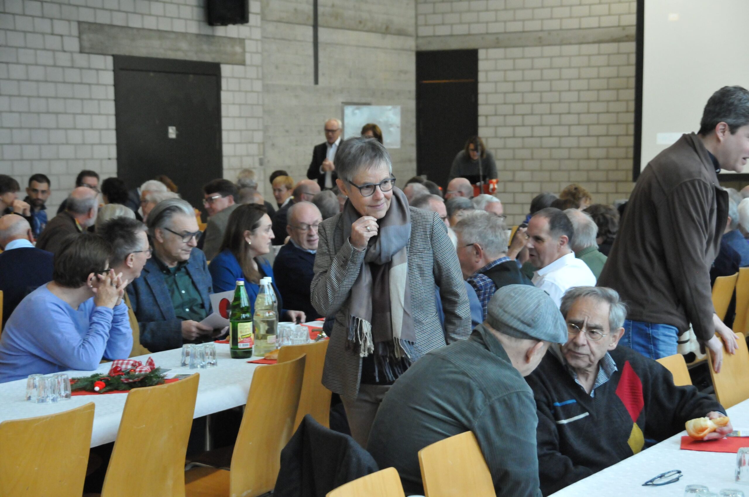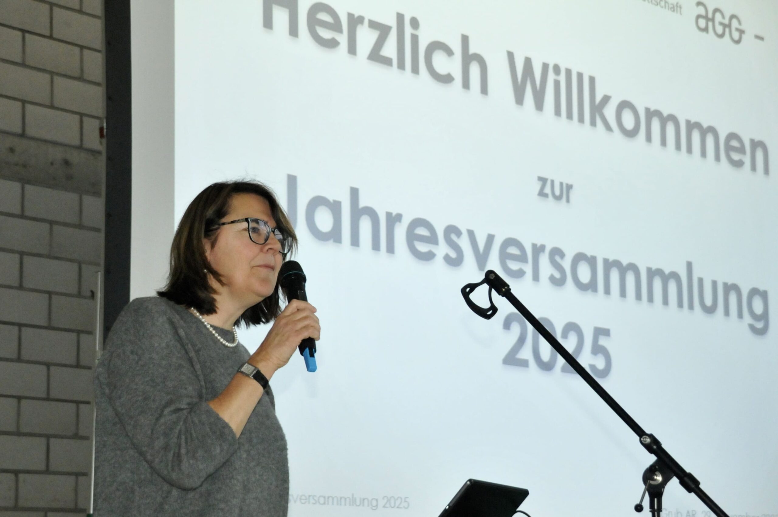 Antonia Fässler leitete zum zweiten Mal die Jahresversammlung der Appenzellischen Gemeinnützigen Gesellschaft, die am 29. November 2025 in der Mehrzweckhalle Grub AR stattfand. Sie konnte unter den rund 100 Mitgliedern Vertretungen der Regierungen aus Ausser- und Innerrhoden und weitere Ehrengäste begrüssen. Der Gemeindepräsident von Grub, Matthias Züst, stellte seine Gemeinde vor und dankte der AGG, dass sie Grub als Tagungsort wählte.